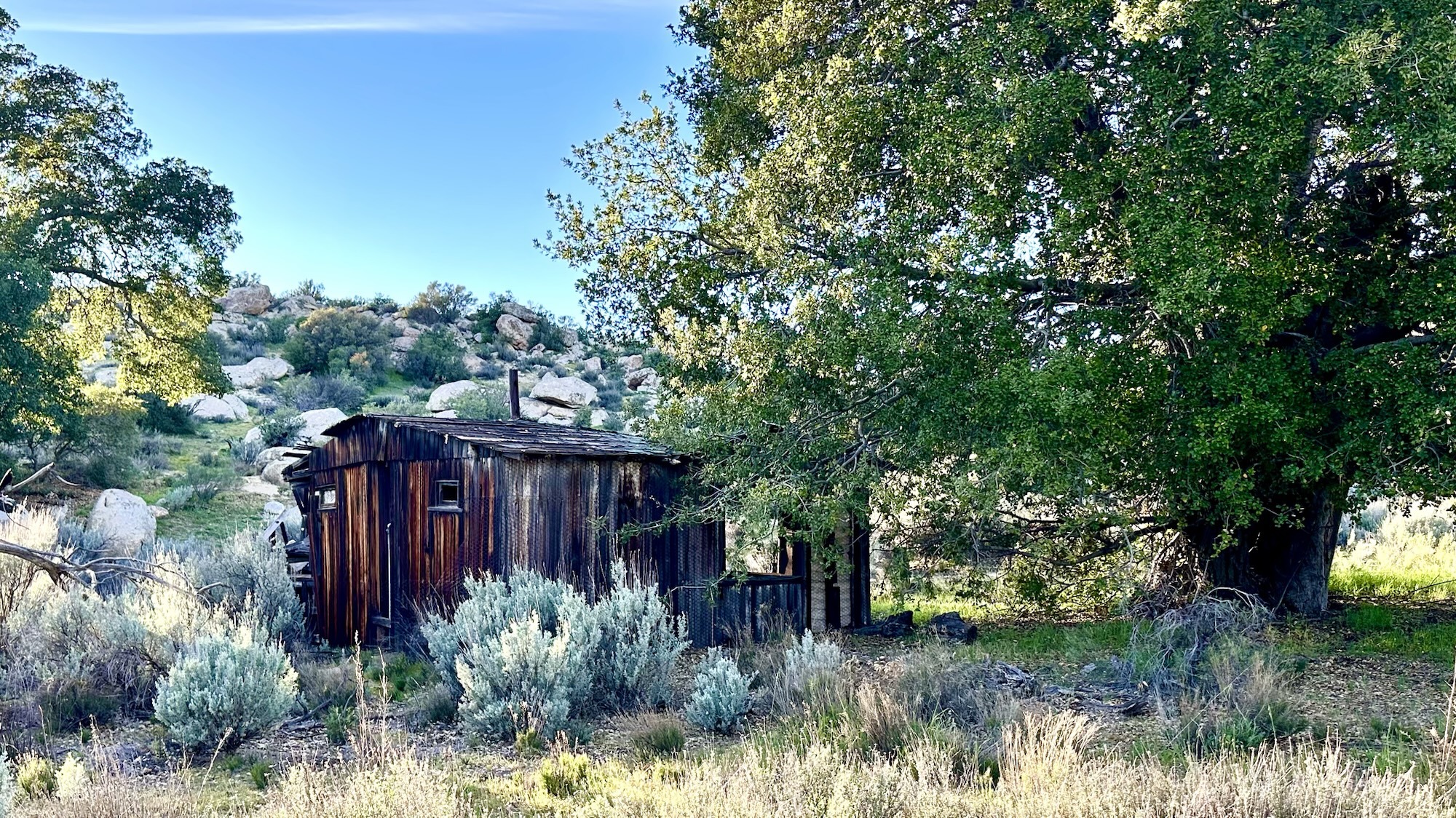 Going for a late afternoon stroll and having a Bob Ross moment with some happy trees and an old cabin.